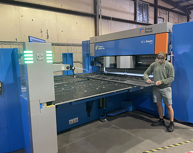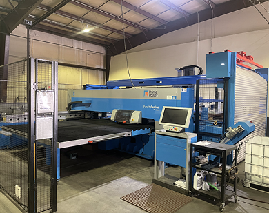 Our Prima Power punch boasts top of the line precision and punching speed. The Prima punch is equipped with an automated manufacturing cell and is capable of unattended production.