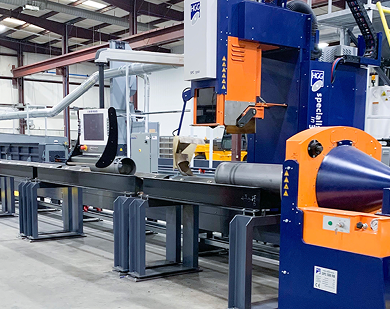 GRG’s HGG tube plasma cutter can process 20” OD steel, stainless, and aluminum pipe with a maximum travel length of 42’. Coupled with MetFin’s Skew Roll Blast System, we can shot peen blast the ID and OD of pipe up to 10” OD to achieve a pristine finish.